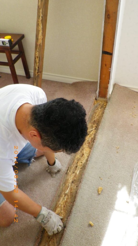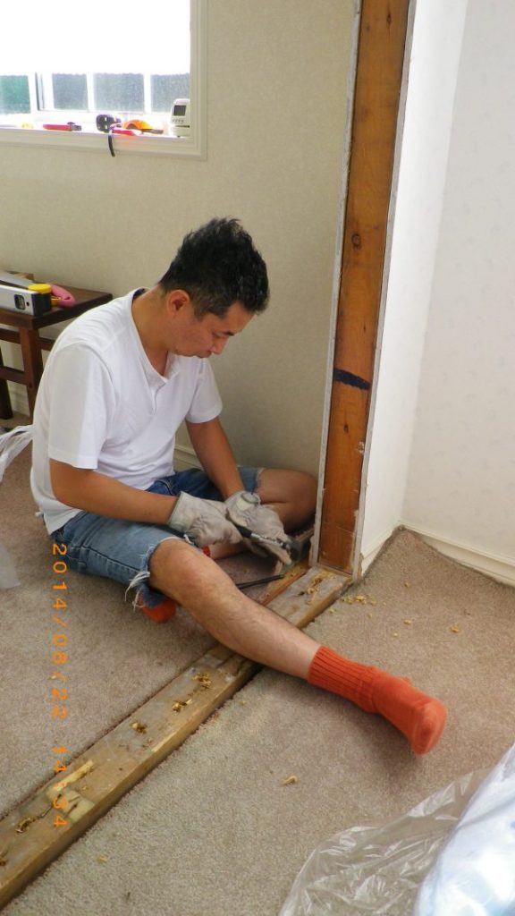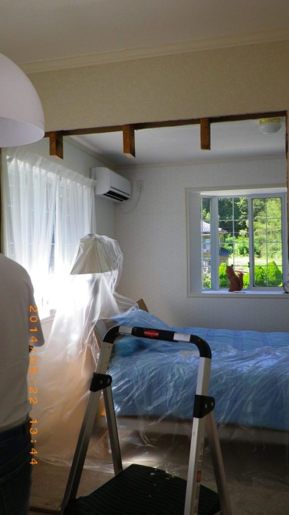 我が家は2×4構造で、さらに今抜いている壁は「構造壁」では無く、部屋の仕切りとしてある壁なので抜いても良いが、絶対太い柱を勝手に切るのは止めましょう。