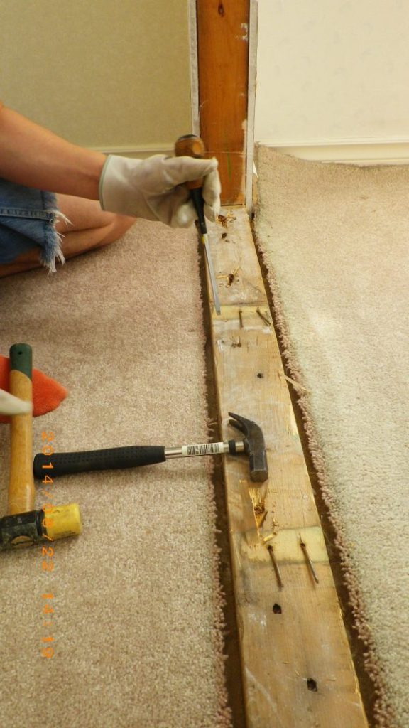下側は釘で止まっているから、後で力ずくで木を外します。