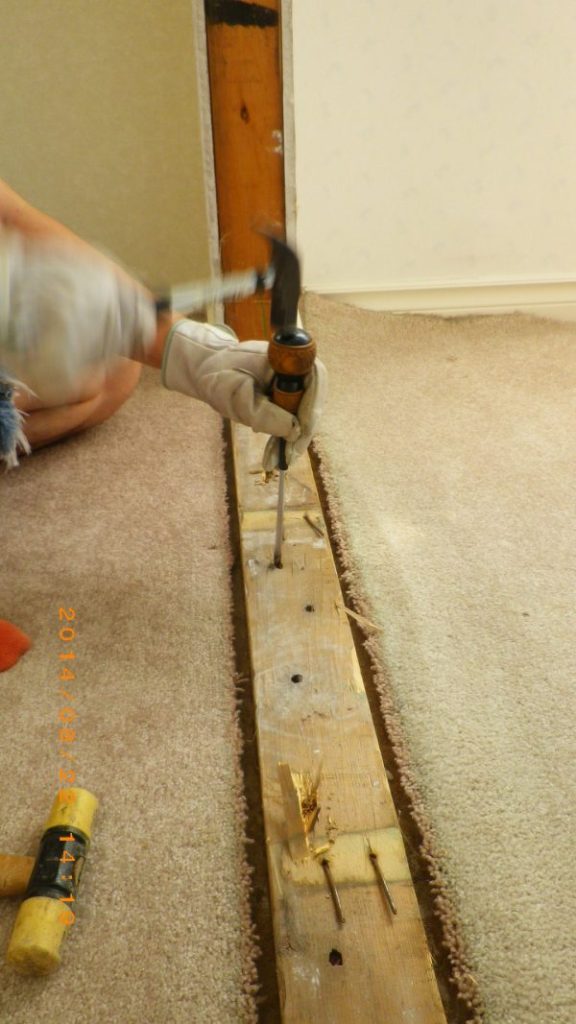 この枠材は目一杯ネールマシンで釘が打ち込んであるので、マイナスドライバーと金槌でシコシコ頭をほじくりながら、釘抜きで抜いていきます。