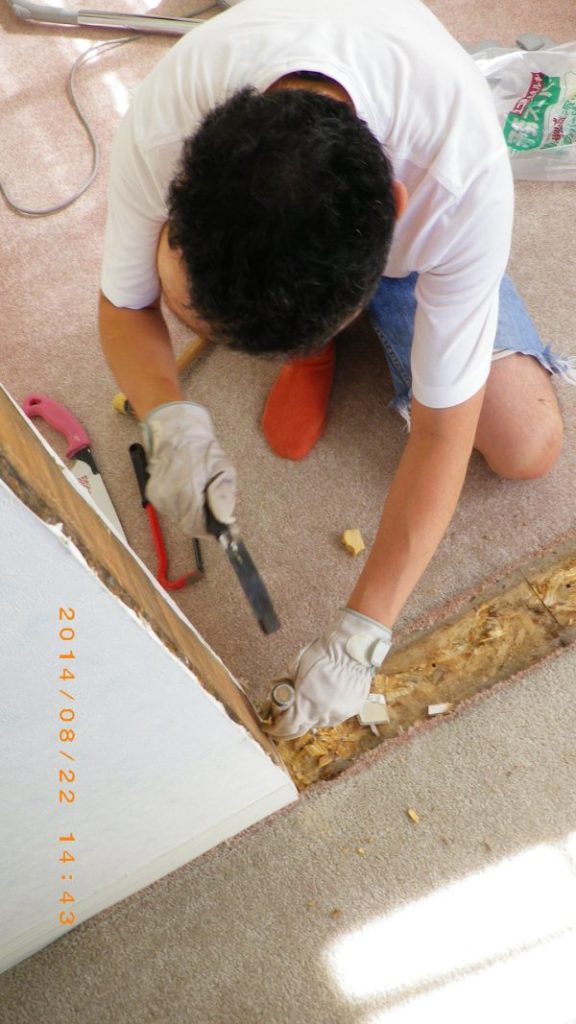 それだけでは綺麗に取れなかったので、ノミでひたすらほじる。
