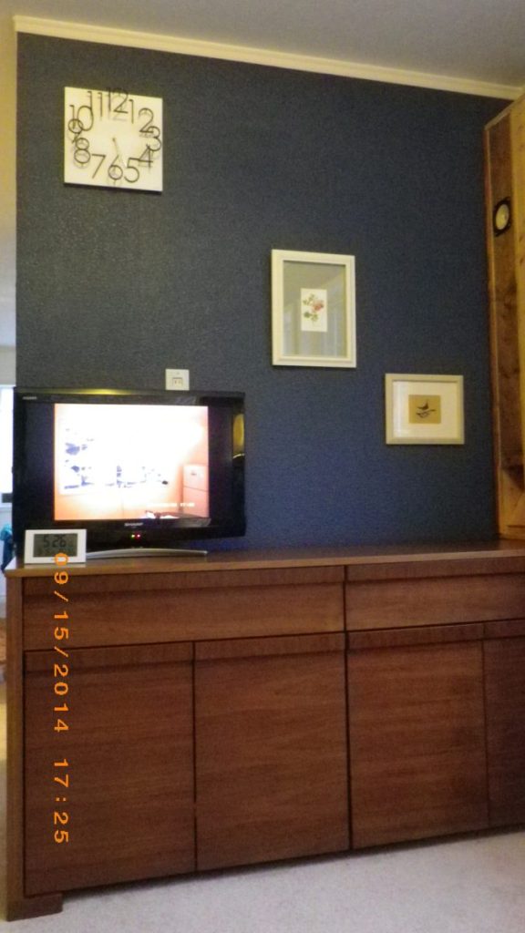 早速デジタルアンプも買って、サイドボードの上に乗る様にスピーカーもちょん切り設置した。