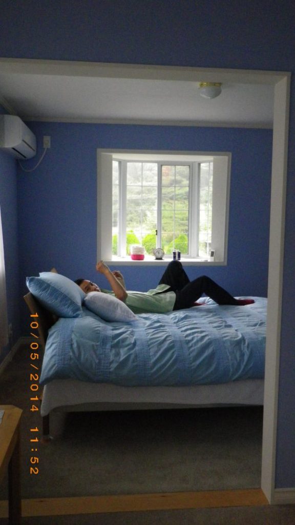 後日フリースのブランケットを掛けた所の写真。