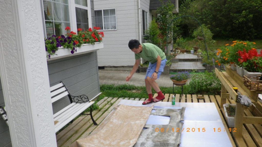 そこで、天井の張り替え。場所が居る。そうだデッキを広くして作業場にしよう。