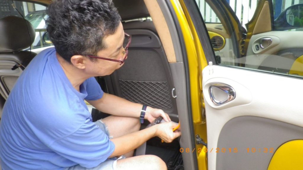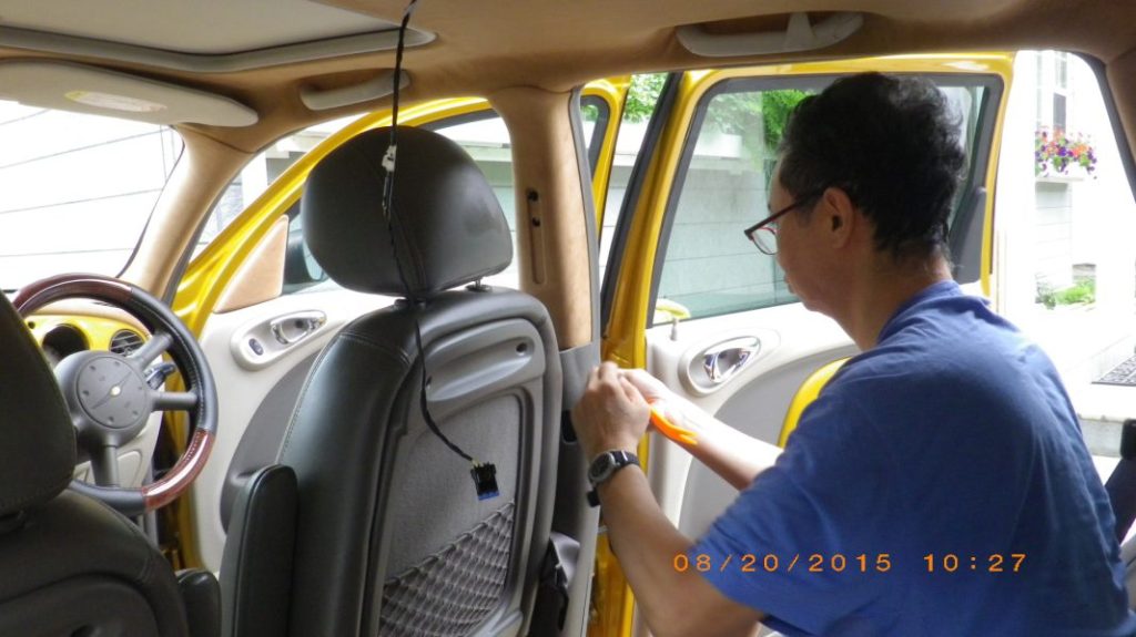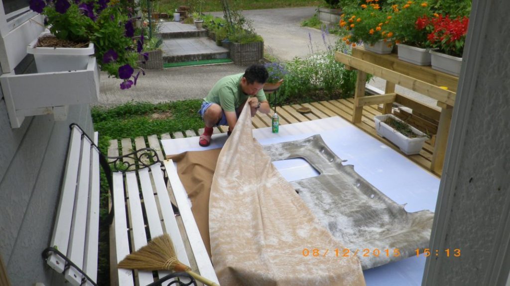 外車の天井は10年経つと剥がれるらしい。専門の業者が居て張り替えには6万から10万。