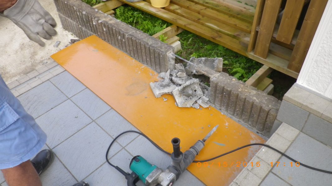 そこで、ブロックの一段目を壊し、ブロックの外面までデッキを拡張する事にした。