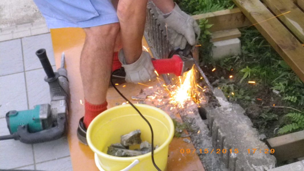 グラインダーでがんがん鉄筋を切りながらブロックを壊し、まあ何とかザックリだがちっちゃなブロック塀の一段目を取り去った。