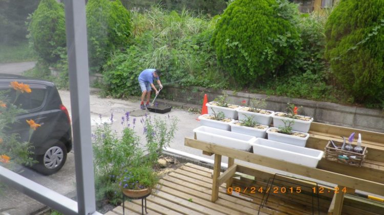 大きなデッキはさらに広くなり、ついでに花台も作り広々。道も取りあえず直る。