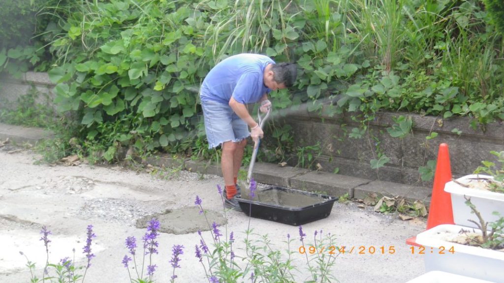 格好悪いし蚊の住みかになるのも嫌なので、セメントで綺麗に塗り固めよう。