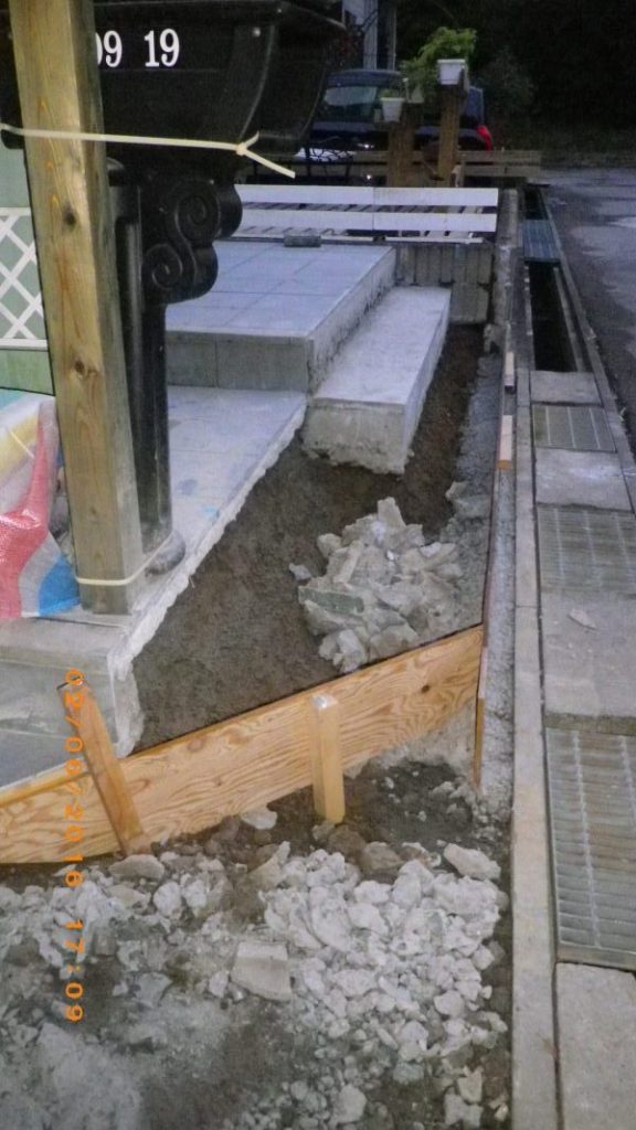 車庫側の入り口は、花壇を取り除いても階段の出っ張りが結構気になる事が分かった。