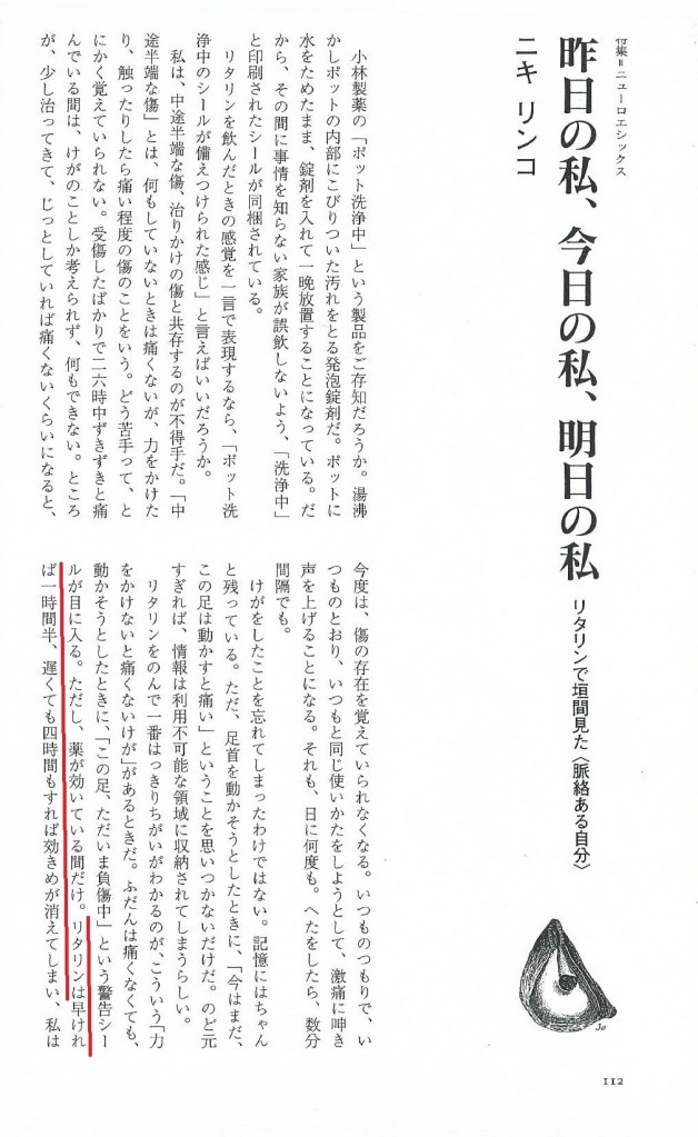 私が現代思想の記事を入手したのは、リタリン禁止後大分経ってからの事だが、