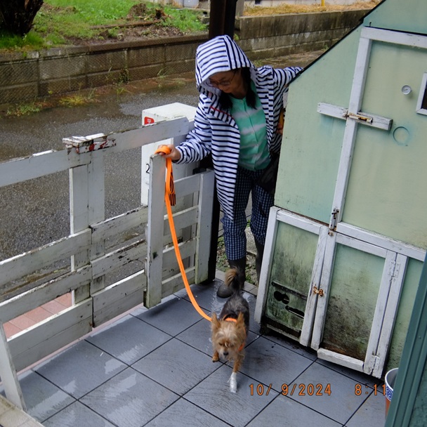 どうぶつ病院へ行く前に、粗相があっては大変なので、イラチの奥さんは雨の中イヌサンポ。