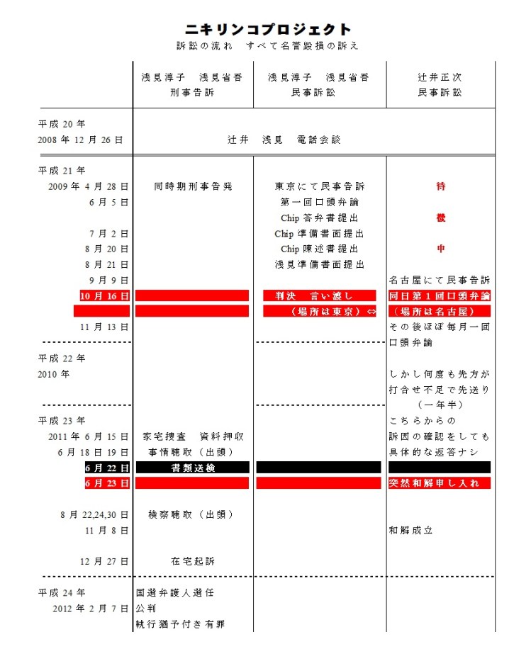 名誉毀損裁判は上智大学教授浅見省吾 花風社代表浅見淳子(旧姓香川淳子)中京大学教授アスペエルデの会CEO辻井正次らにより、3件1日の間も空けず2012年まで続けられました。
