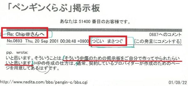 突然つじい まさつぐより中傷掲示板への書き込みを薦められその直後に掲示板は書き込み不能になりました。