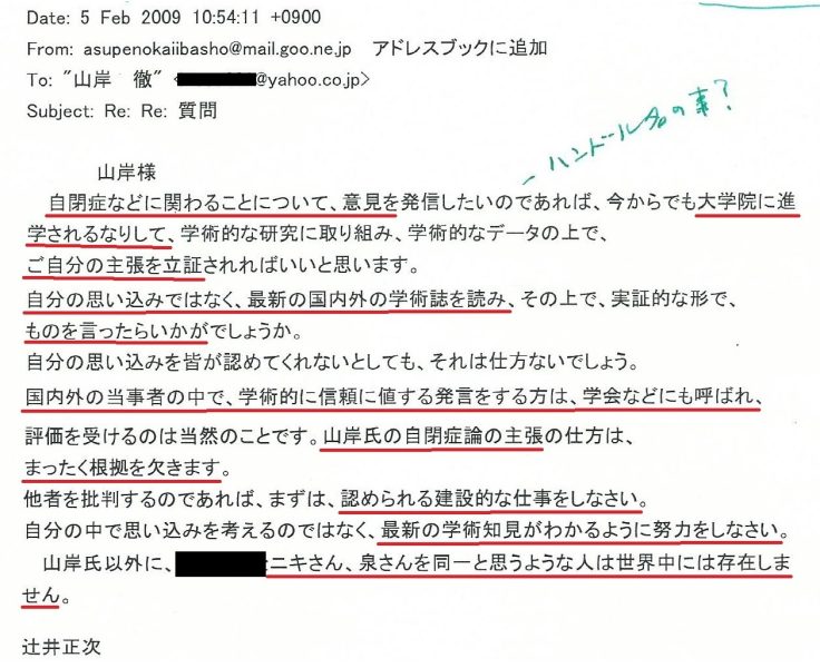 アスペエルデの会の辻井正次名義で何かのメールを頂きました。