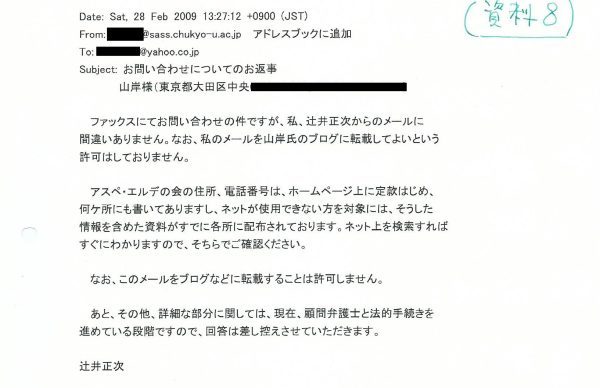 アスペエルデの会CEO辻井正次には、会の顧問弁護士に対して、問い合わせや訴訟回避の相談もしましたが一切無視。