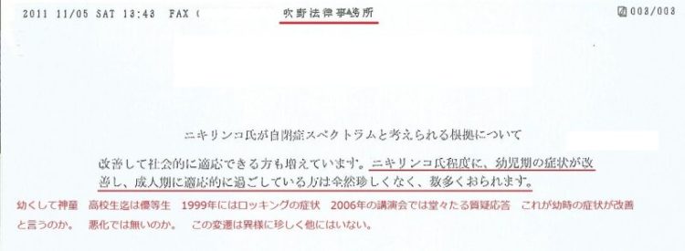 ニキリンコは自分で診断済みと公言し、