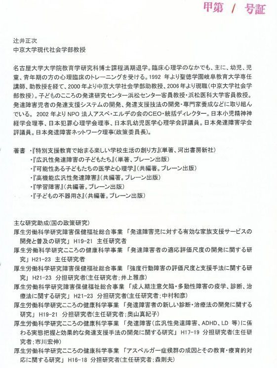 しかし、アスペエルデの会の辻井正次氏より裁判所を通じて受け取った書面では診断を受けていません。