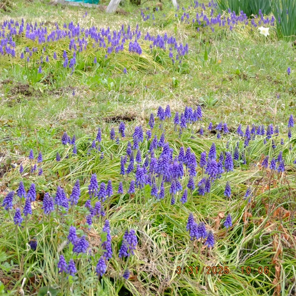 春が訪れ水仙が咲き、遅れて待ちに待ったムスカリが咲いた。