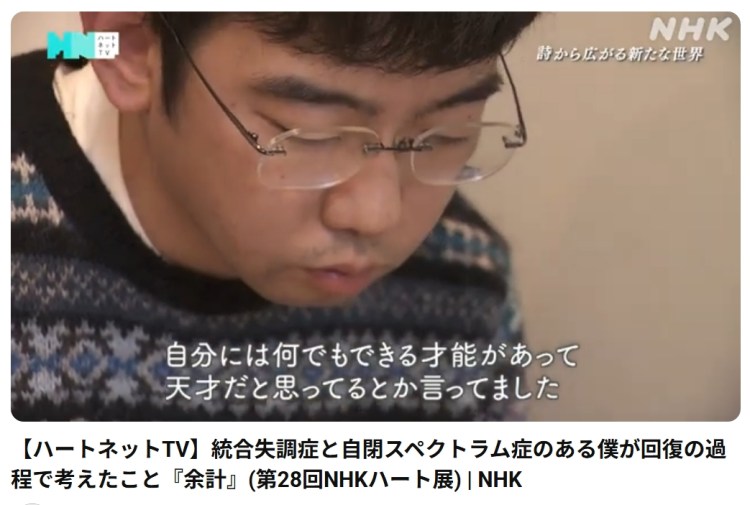 NHKは余程統合失調症のASDを生産したいらしい。YouTubeの内容を見たが、ASDの診断?の有無、それに関する情報は一切無し。